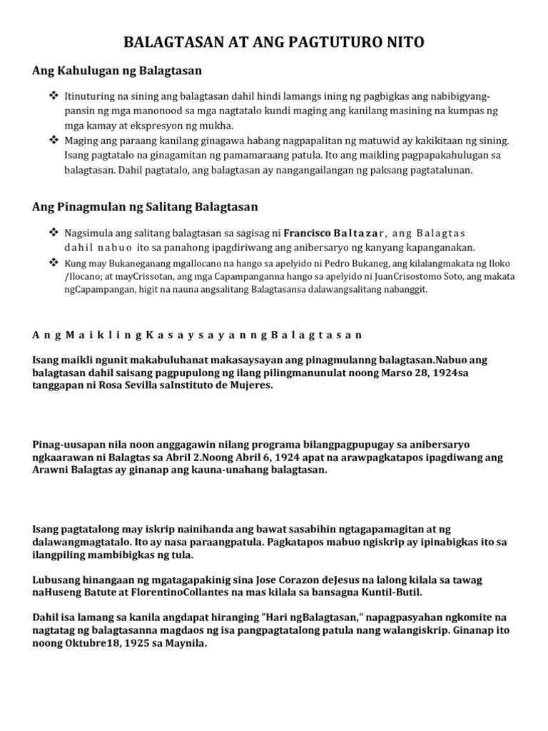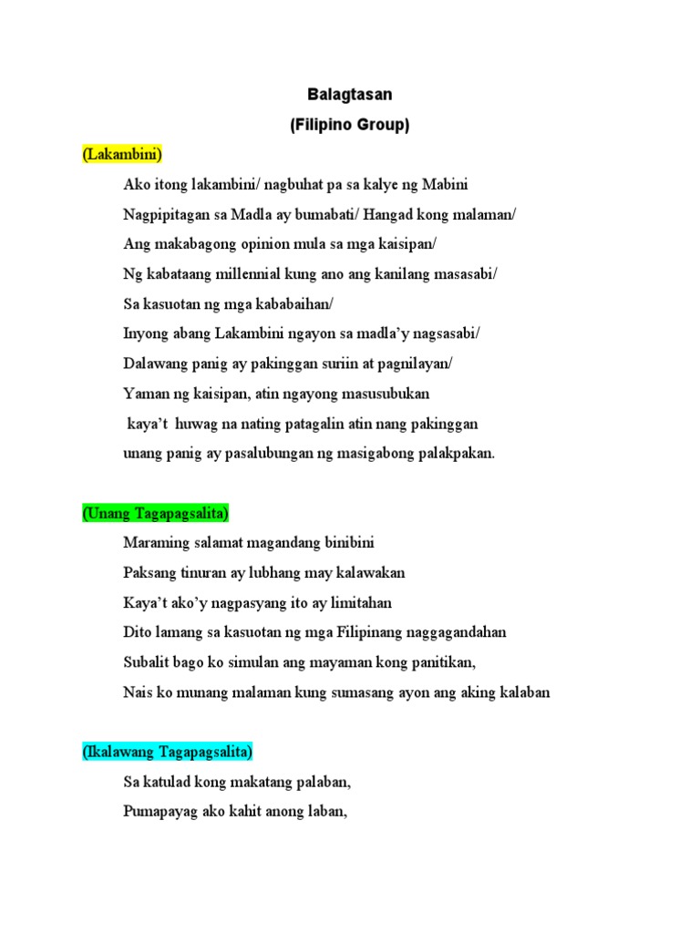 Refutations shall also be done in the same manner. Ang buhay ay hindi lamang pagkain pagtulog at para sa katawan. Hinango mula sa pangalan ni Francisco Balagtas inilalahad ang sining na ito ang isang uri ng panitikan na kung saan ipinapahayag ang mga saloobin o pangangatwiran sa pamamagitan ng pananalitang may mga tugma sa huli.
