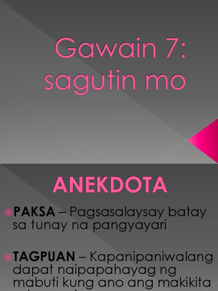 Z Layunin Nasusuri ang binasang anekdota batay sa. Nasasalamin ba sa anekdota ang paniniwala at pananaw ng may-akda. Heto ang isang halimbawa ng anekdota.